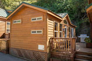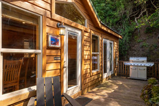 Our cozy single-story cabin features a spacious master bedroom with a luxurious king-sized bed, a charming bunk room with two comfortable single beds, and a convenient queen-size pull-out couch in the living room for additional guests. Enjoy the outdoor deck in the back bedroom complete with a propane BBQ grill. The cabin boasts a fully equipped kitchenette with a convenient mini fridge, a 2-burner gas stove, a 4-person dinette table, and a full bathroom with a shower/tub combination.